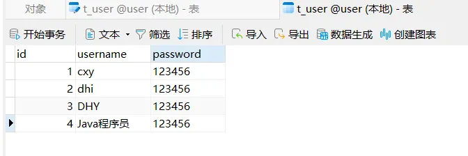 首先我们创建一个t_user表,并插入几条数据,用于后续的查询: