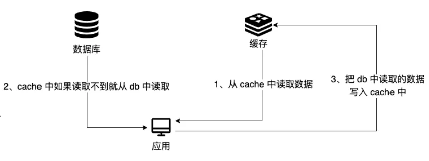 从cache中读取数据,读取到就直接返回。如果读取不到,从db中读取数据返回,然后再把数据放到cache中。
