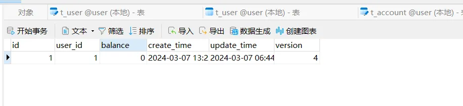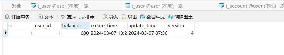 1 2 3 4 5 6 7 8 9 10 11 12 13 14 15 16 17 18 19 20 21 22 @TableName(value = "t_account") @Data public class Account implements Serializable { @TableId(type = IdType.AUTO) private Integer id; private Integer userId; private Integer balance; private Date createTime; private Date updateTime; private Integer version; }@Mapper public interface AccountMapper extends BaseMapper <Account> { }