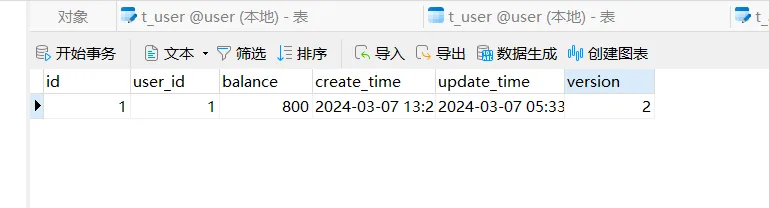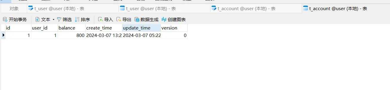 然后我们查看数据库,结果如下,因为扣减了两次,所有余额为800,这个数据对的上。