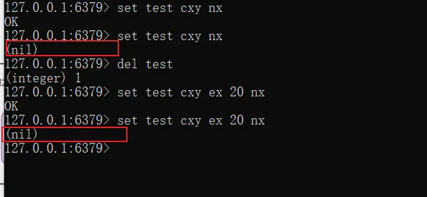 如下图所示,在使用nx指令的时候,只有在该key不存在的时候,才能设置成功