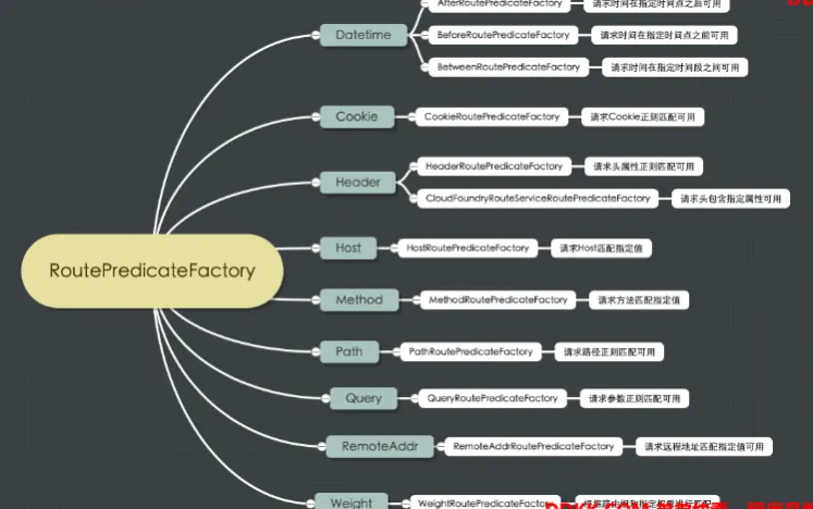 这里面使用了Path断言,Path断言会根据请求的路径进行匹配,除了Path断言外,常用的断言如下图所示: