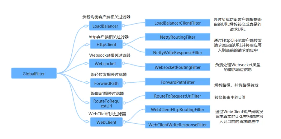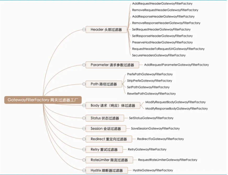 SpringCloud Gateway的Filter分为两种类型:Gateway Filter和Global Filter,过滤器会对请求和响应进行处理,比如添加参数,URL重写等,常用的网关过滤器如下: