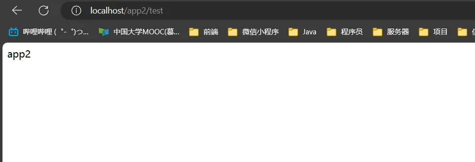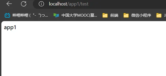 分别访问http://localhost/app1/test和http://localhost/app2/test,结果如下: