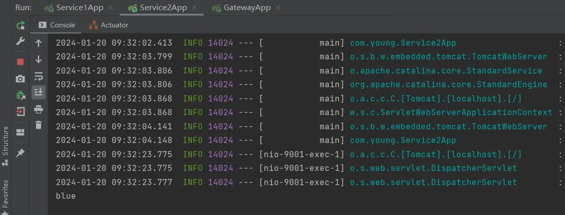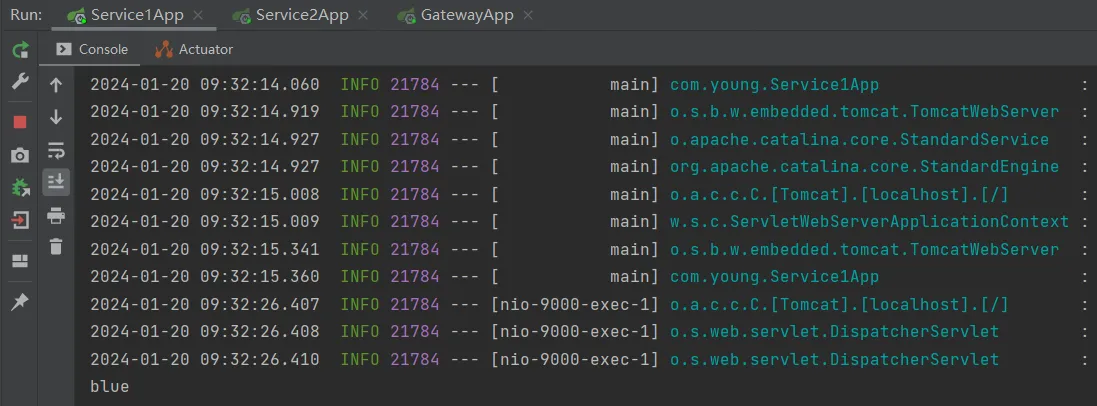 我们修改app-service1和app-service2的controller代码,方便查看结果: