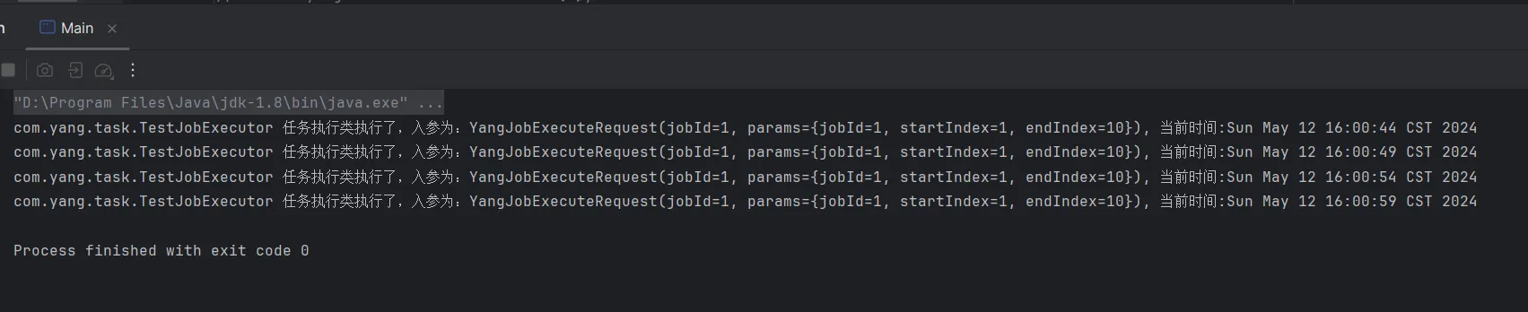 然后我们添加测试方法,模拟从数据库中获取数据,并根据任务类路径,获取对应的runnable并提交到YangJobManager中。