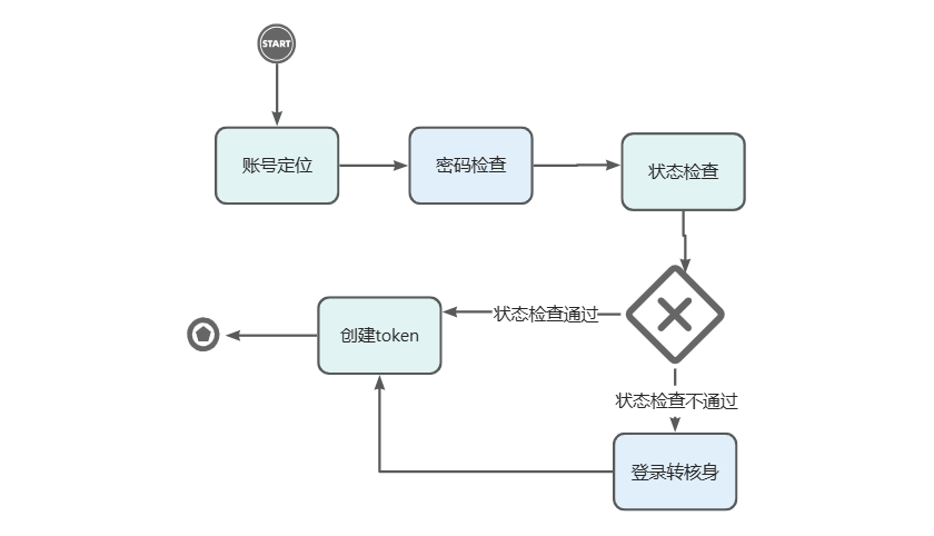 - 创建token:状态检查通过,则下发登录态token,若不通过,下发核身token
